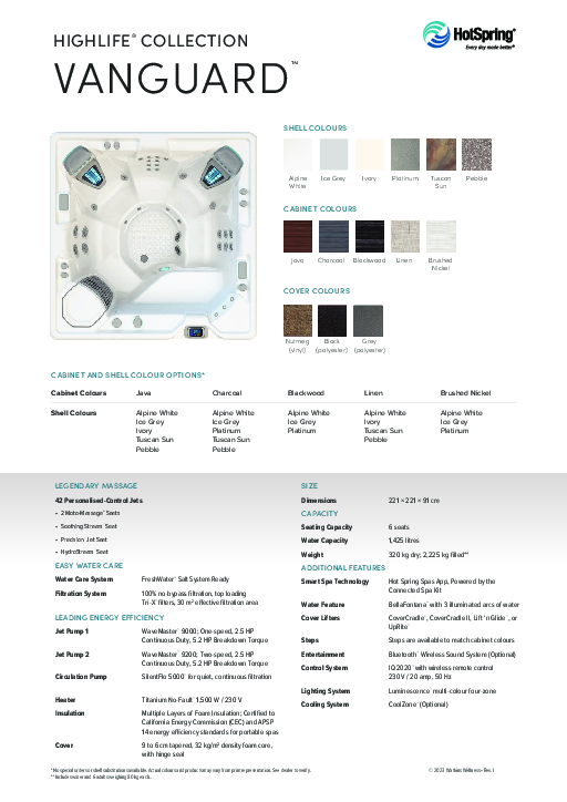 Every seat in the family-friendly Vanguard could be your best seat. It features two seats with Moto-Massage® DX jets, and jets to soothe your neck, shoulders, back and feet.